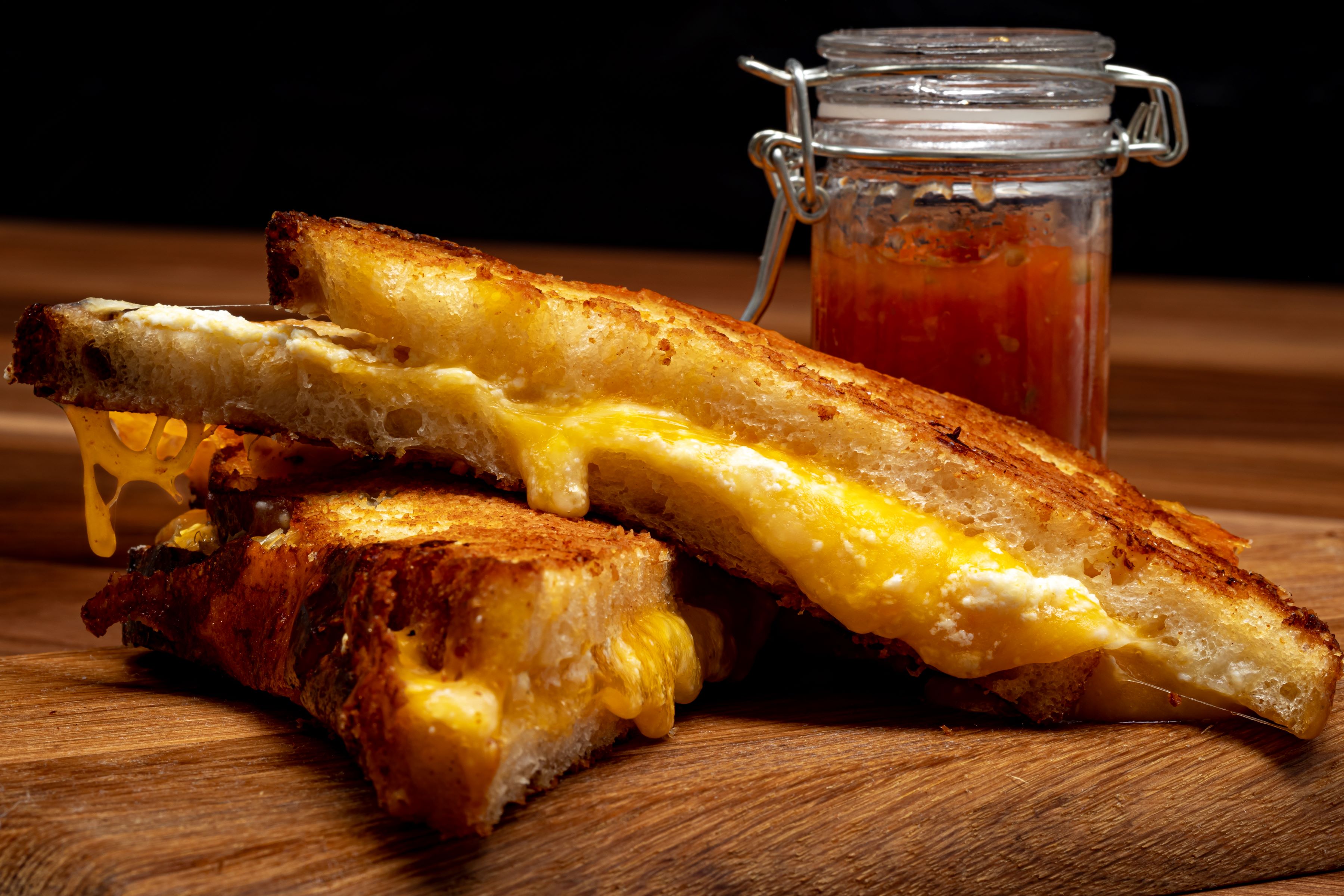 with Parmesan Crusted Semolina Bread, Monterey Jack, Cheddar, Bellwether Farms Fromage Blanc